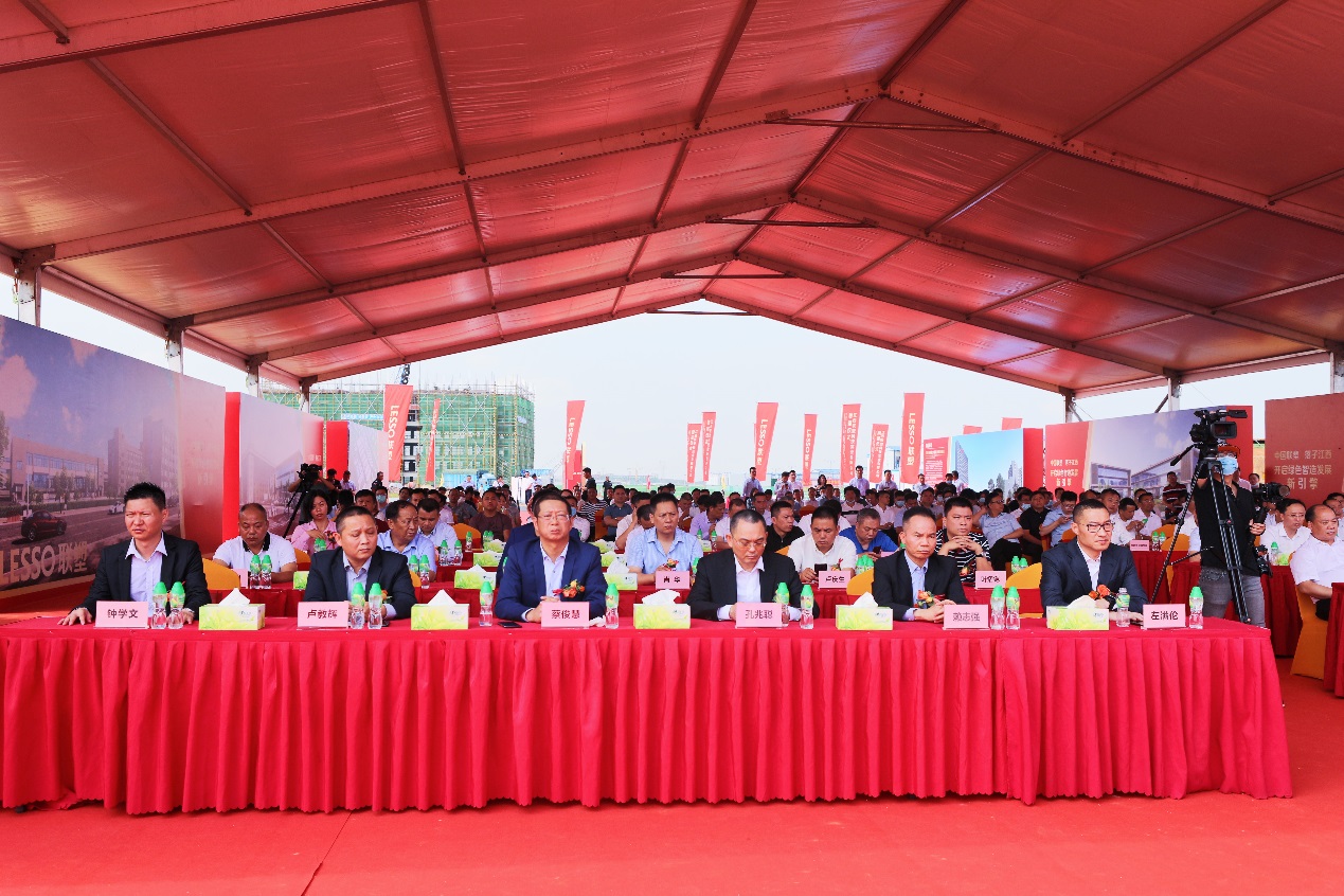 奠基儀式現場,南昌市市委常委、常務副市長楊文斌先生,市工信局局長何琦先生,市投資促進局局長戴瓊女士,新建區區委書記饒紹清先生,區委副書記盛煒先生,區人大常委會主任劉珠先生,區政協主席陳圣棟先生;中國聯塑集團執行董事兼行政總裁左滿倫先生,執行董事兼副總裁賴志強先生,執行董事兼副總裁孔兆聰先生,副總裁蔡俊慧先生,副總裁盧教輝先生等領導和嘉賓出席本次奠基儀式。南昌新建區區長王瑋主持本次奠基儀式。